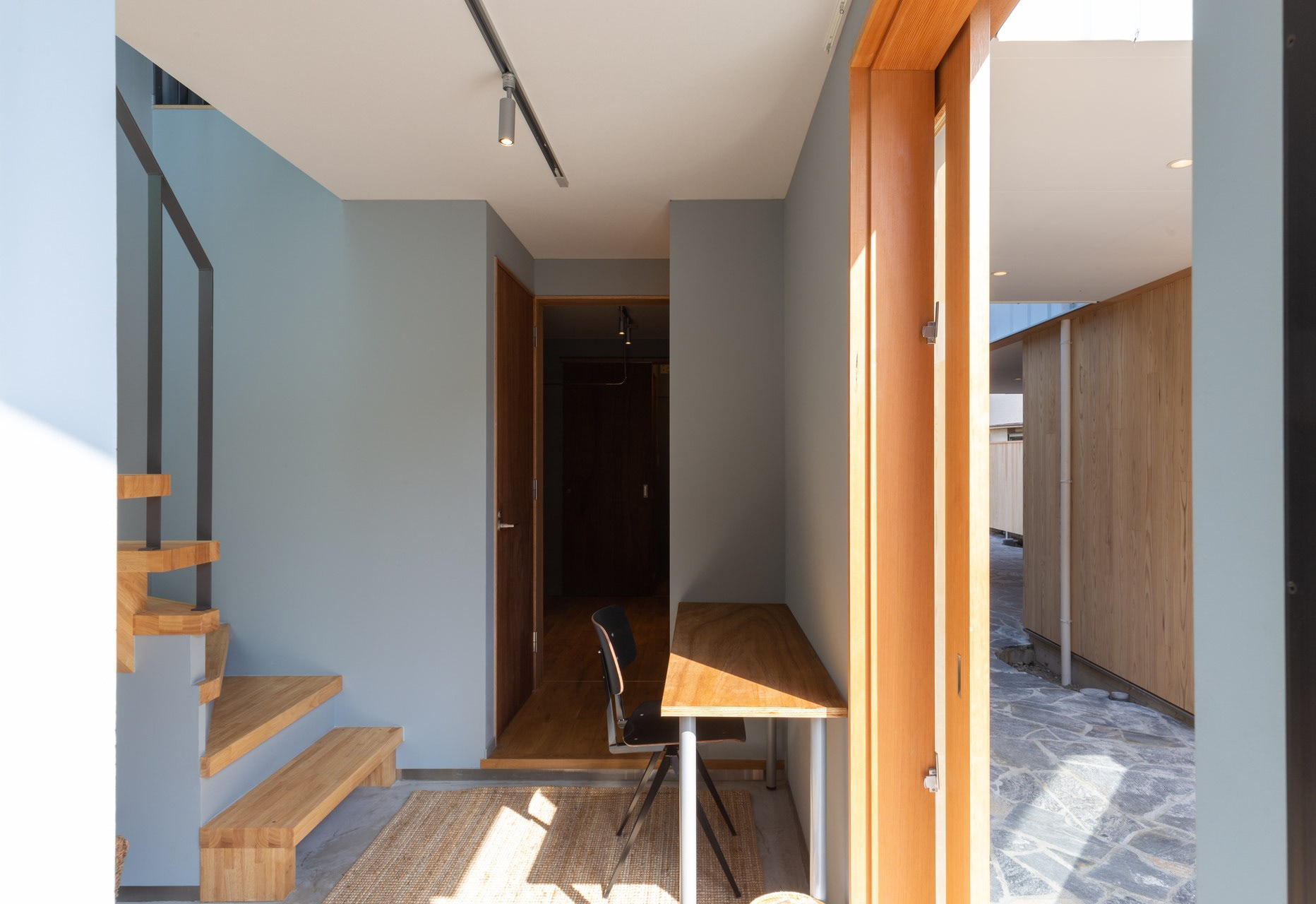 玄関を兼ねた土間をアプローチ側へ開放。